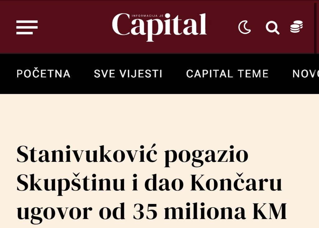 Po jutru se dan poznaje, kaže stara narodna. Jutro nam je počelo potpisom Draška Stanivukovića kojim se daje 35 miliona maraka firmi Končar iz Zagreba, a dan se nastavio njegovim susretom sa Draganom Čovićem. Da li je Draško požurio da Čovića izvijesti o uspješno realizovanom poslu u korist firme iz Hrvatske? Pri tom, srpske firme su imale daleko povoljnije ponude, ali je to odbačeno.