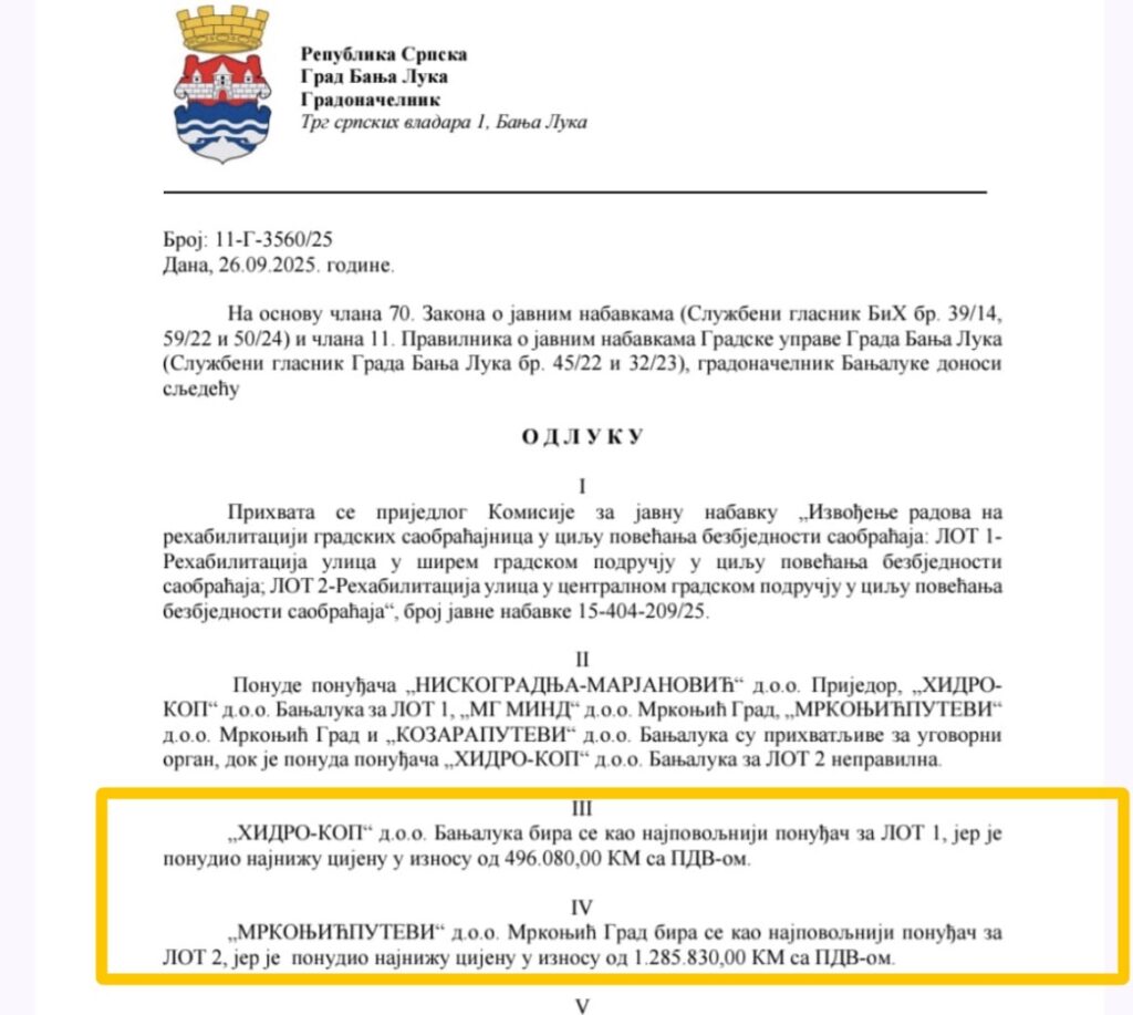 Banjaluka ponovo svjedoči još jednoj sumnjivoj javnoj nabavci. Grad je donio odluku o „rehabilitaciji saobraćajnica“, što u prevodu znači da će se ulice samo površno presvući asfaltom, onako kako smo već vidjeli u naselju Mejdan, gdje je posao odrađen loše i kratkoročno.