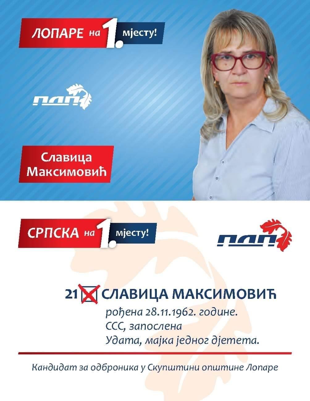 Prije sva dana novi izlazak iz PDP-a (čitaj Pokreta). I da! Ponovo je u pitanju žena. Slavica Maksimović, dosadašnja odbornica PDP-a iz Lopara, napustila je ovu stranku i prešla u SNSD.